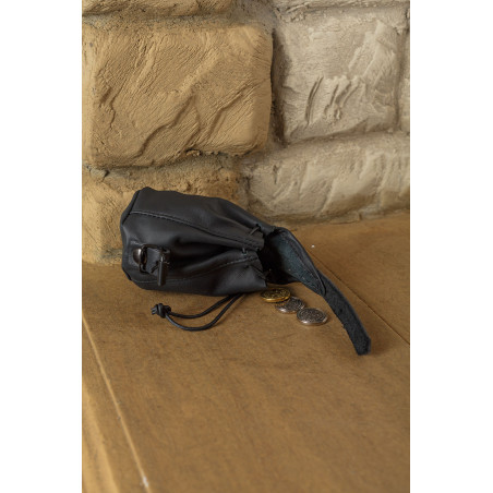 SKÓRZANA SAKWA NA PAS BELWAR - CZARNA LARP