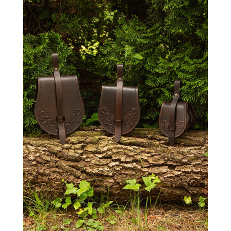 SKÓRZANA ŚREDNIA TORBA NA PAS WIKING KATTEGAT - BRĄZOWA LARP
