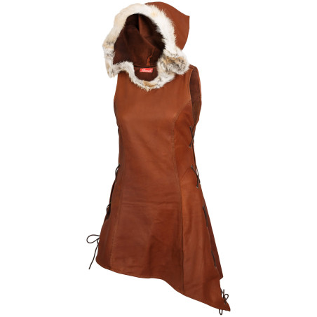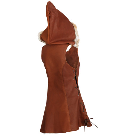 SKÓRZANA SUKNIA Z KAPTUREM FREYA - BRĄZOWA M LARP