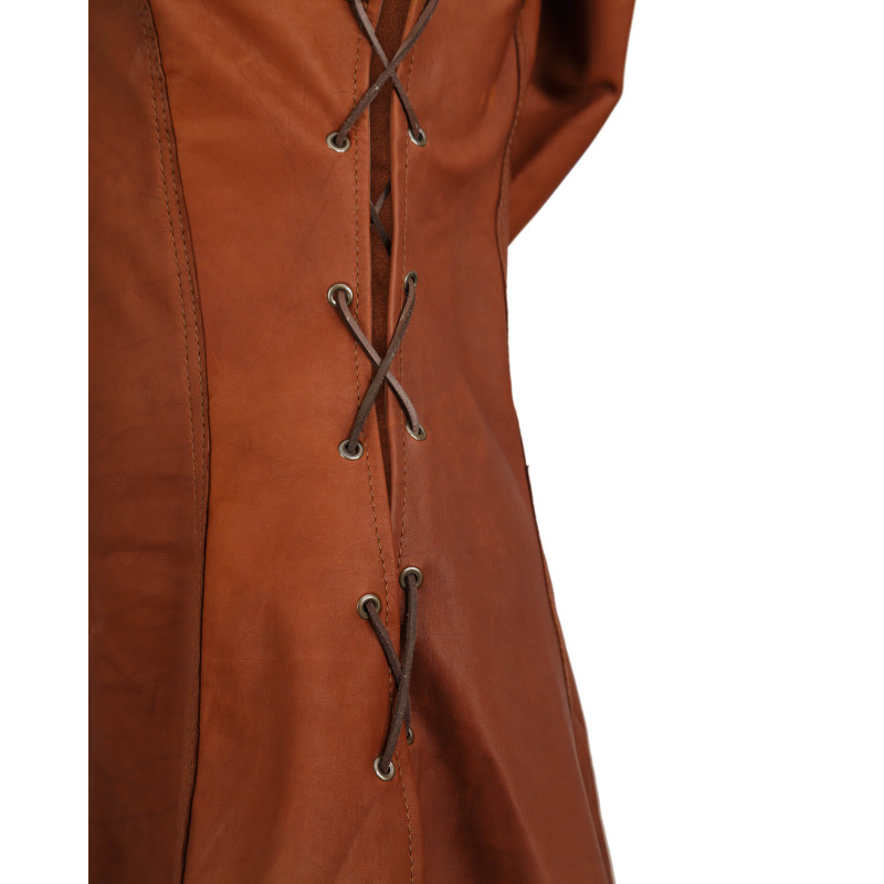 SKÓRZANA SUKNIA Z KAPTUREM FREYA - BRĄZOWA XS-S LARP