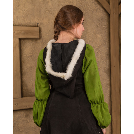 SKÓRZANA SUKNIA Z KAPTUREM FREYA - CZARNA L-XL LARP