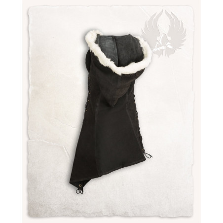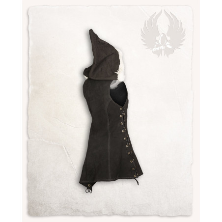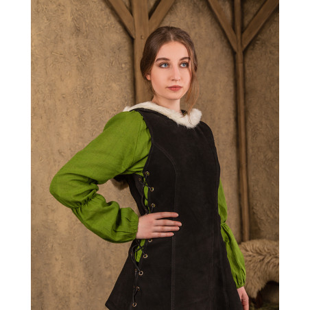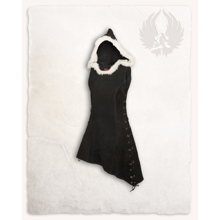 SKÓRZANA SUKNIA Z KAPTUREM FREYA - CZARNA M LARP