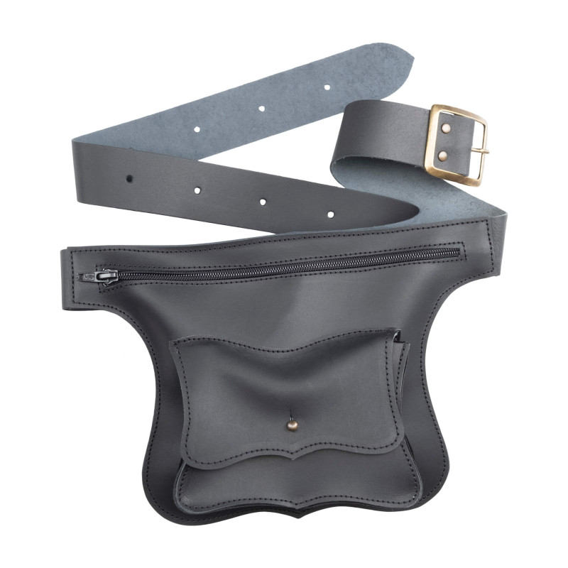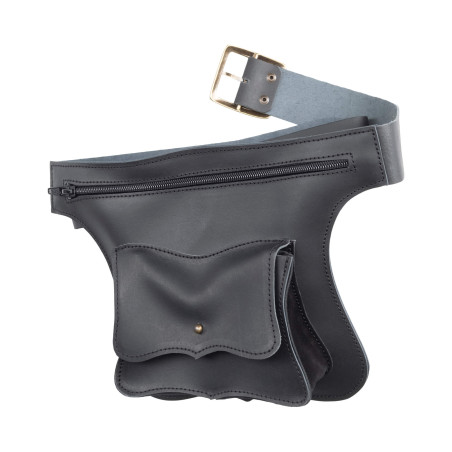 SKÓRZANA TORBA BIODROWA VAGABUNDO - CZARNA LARP