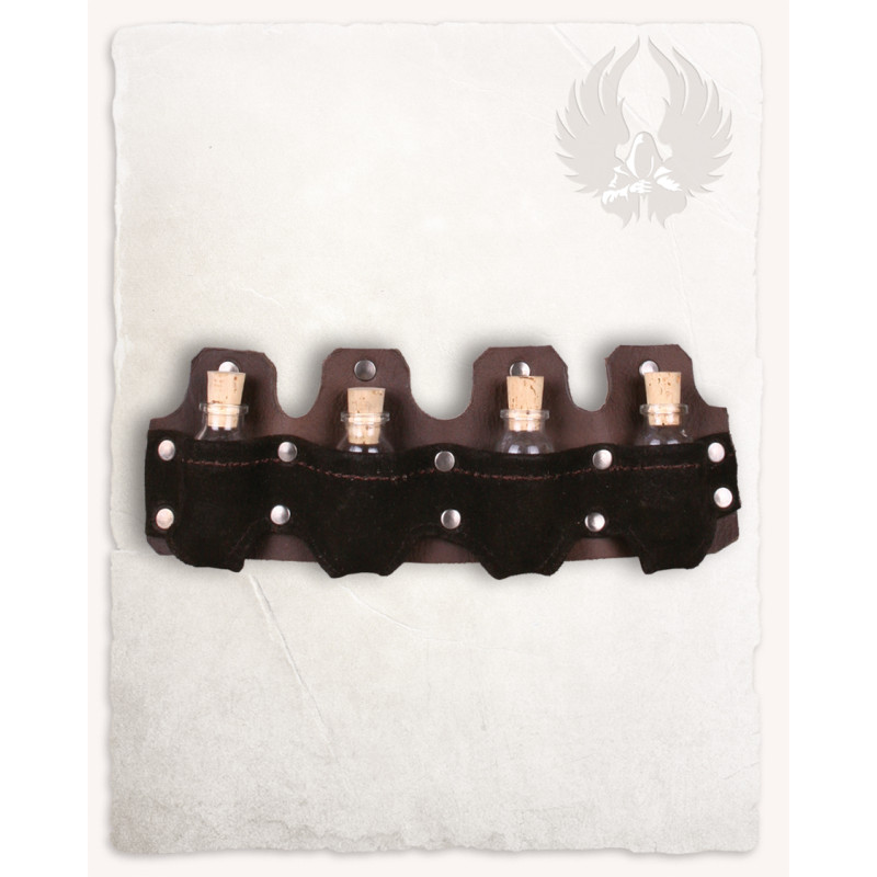 Mieści on cztery małe buteleczki i można go przypiąć do pasa.