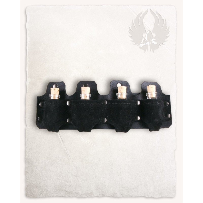 Mieści on cztery małe buteleczki i można go przypiąć do pasa.