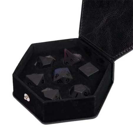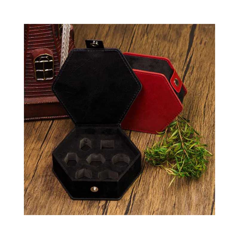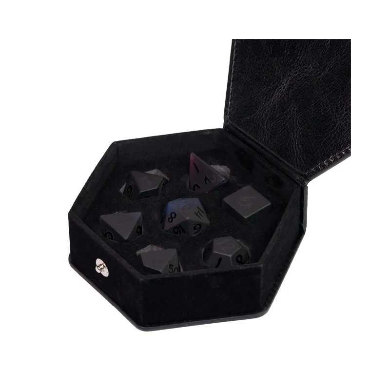 Eleganckie etui na klasyczny zestaw kości RPG. Doskonały wybór aby utrzymać kostki w jednym miejscu i wygodnie transportować je między sesjami.