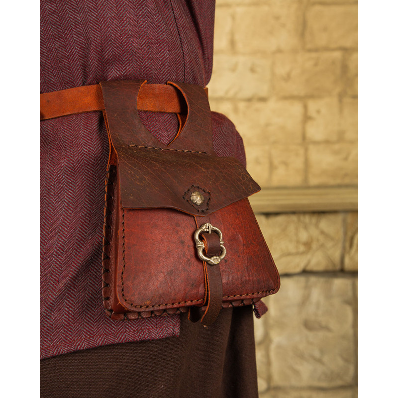 SKÓRZANA TORBA NA PAS CALVERT - BRĄZOWA LARP