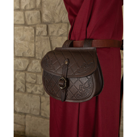SKÓRZANA TORBA NA PAS JULIUS - BRĄZOWA LARP