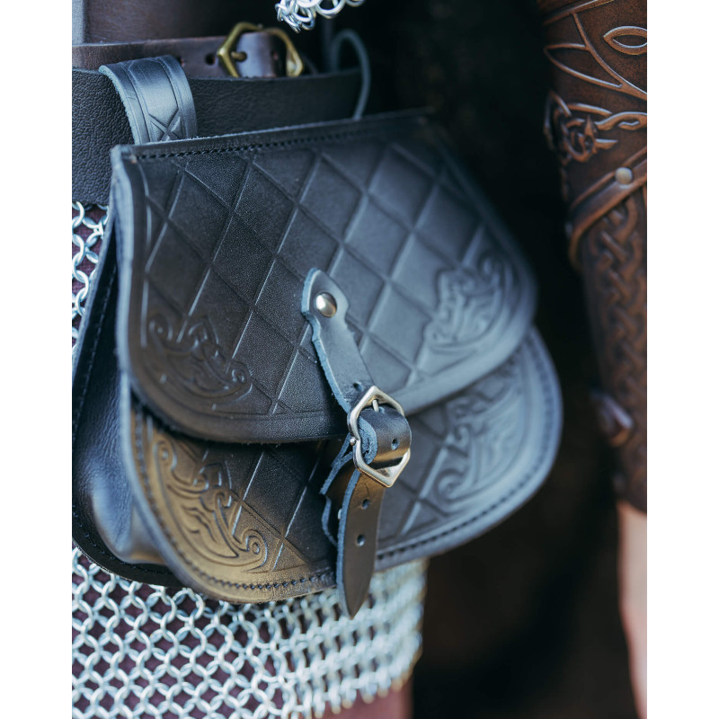 SKÓRZANA TORBA NA PAS JULIUS - CZARNA LARP