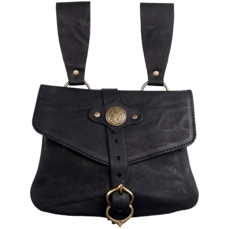 Torba na pas Sancho wykonana jest z wytrzymałej, fakturowanej skóry i wyróżnia się podwójną klamrą oraz ozdobnymi okuciami z motywem węzłów.