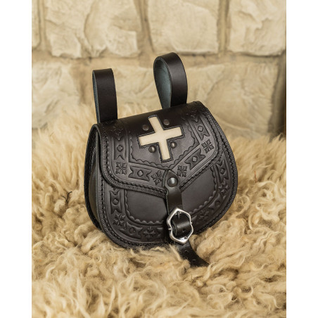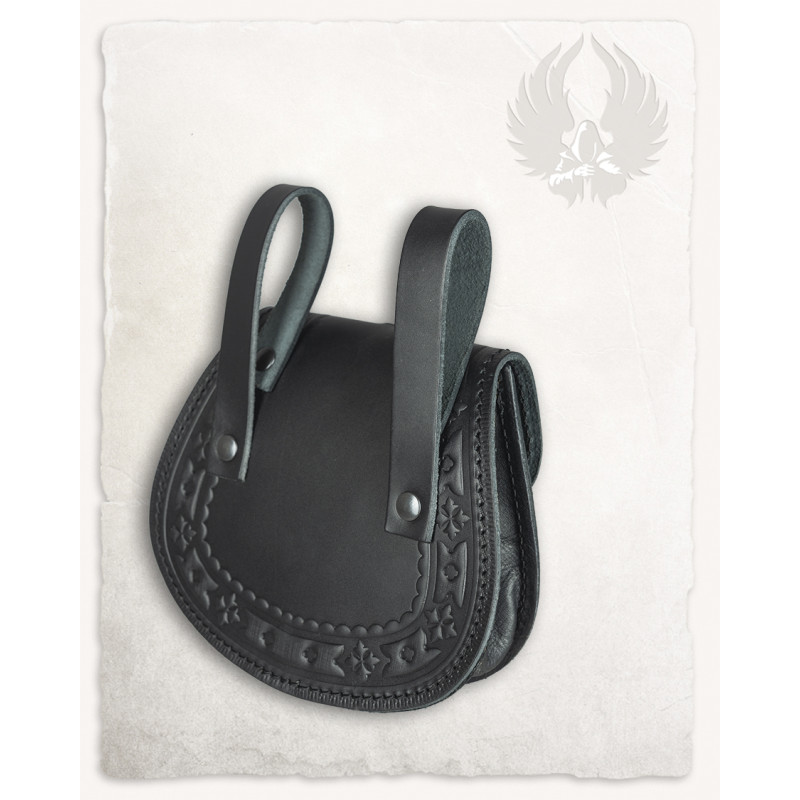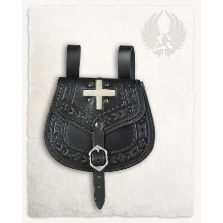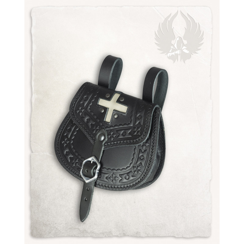 SKÓRZANA TORBA NA PAS TEMPLARIUSZA GALVANO - CZARNA LARP