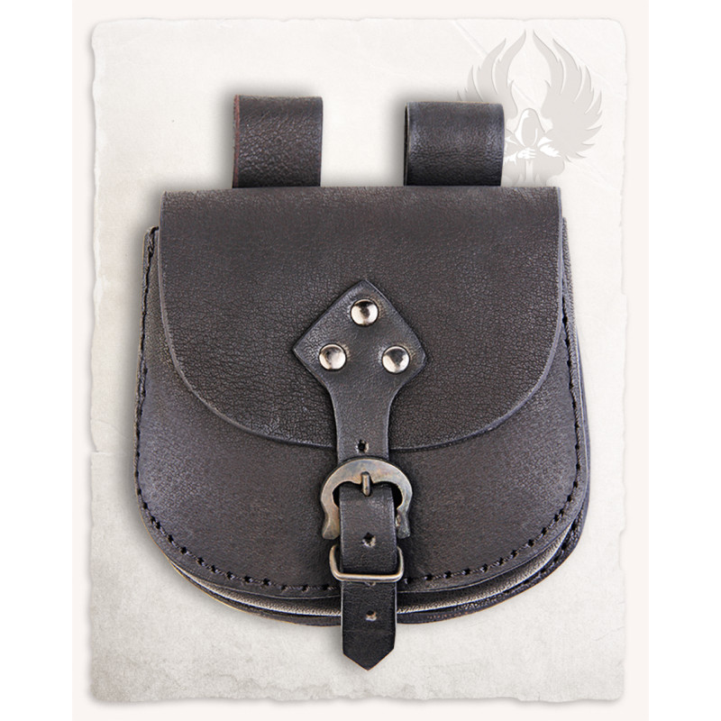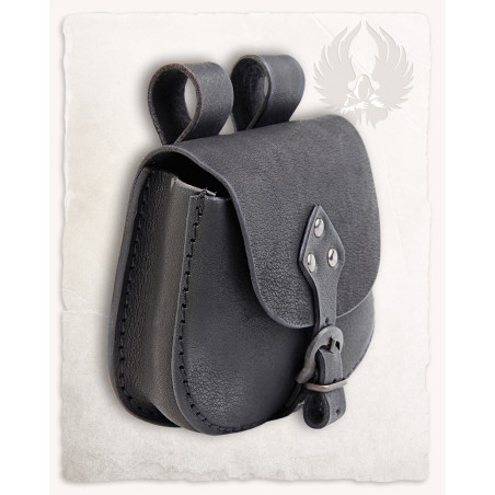 Torba zapinana jest z przodu na mosiężną klamrę i posiada dwie szlufki do mocowania na pasie z tyłu.
