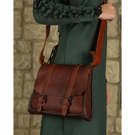 SKÓRZANA TORBA NA RAMIĘ BELWAR - BRĄZOWA LARP