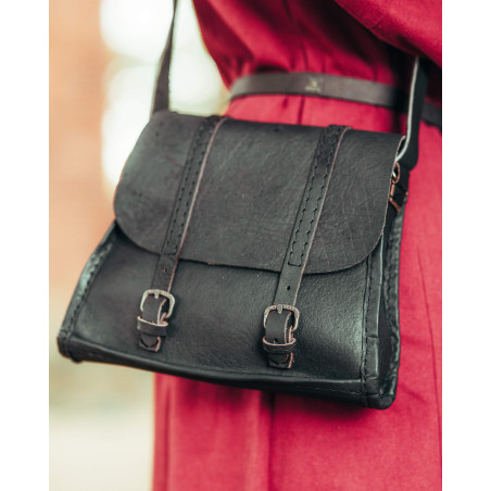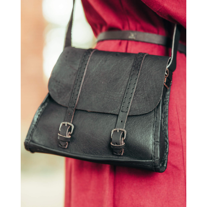 SKÓRZANA TORBA NA RAMIĘ BELWAR - CZARNA LARP