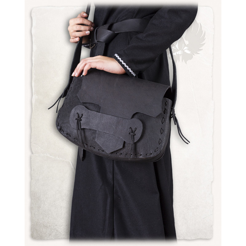 SKÓRZANA TORBA NA RAMIĘ MEERA - CZARNA LARP