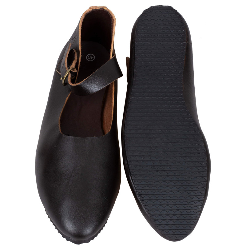 Druga edycja naszych popularnych butów za kostkę Jadwiga posiada ulepszony krój, a podeszwy zostały zoptymalizowane do użytku na zewnątrz. Podeszwy wykonano teraz z wysokiej jakości klejonego plastiku z bieżnikiem, co zapewnia pewne oparcie nawet na mokrych łąkach i śliskich powierzchniach. Od szlachetnych dam po karczemne służące – buty Jadwiga doskonale pasują do różnych historycznych strojów.