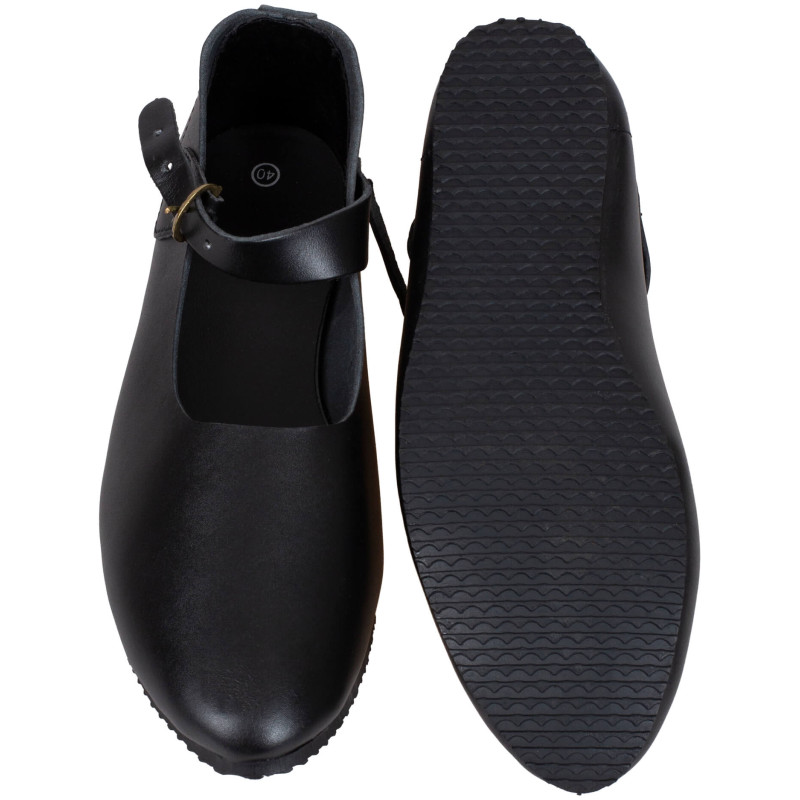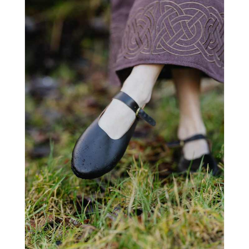 Druga edycja naszych popularnych butów za kostkę Jadwiga posiada ulepszony krój, a podeszwy zostały zoptymalizowane do użytku na zewnątrz. Podeszwy wykonano teraz z wysokiej jakości klejonego plastiku z bieżnikiem, co zapewnia pewne oparcie nawet na mokrych łąkach i śliskich powierzchniach. Od szlachetnych dam po karczemne służące – buty Jadwiga doskonale pasują do różnych historycznych strojów.