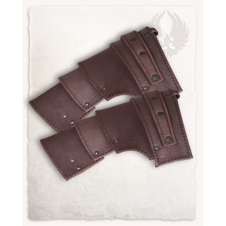 Skórzane naramienniki z serii "Albrecht", podobnie jak reszta zbroi z tej kolekcji, zostały wykonane z wysokiej jakości skóry wierzchniej. Dwa elastyczne segmenty zapewniają dużą swobodę ruchu i nadają zbroi wyjątkowego charakteru, przypominającego rzymską loricę segmentatę. Naramienniki "Albrecht" są idealne dla lekkich wojowników, takich jak łucznicy czy zwiadowcy. Stanowią doskonałe uzupełnienie zbroi na tors "Albrecht". Zamek i mocowanie odbywają się za pomocą pasów, które oplatają ramię oraz górną część ramienia.