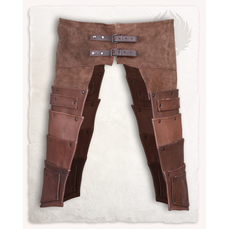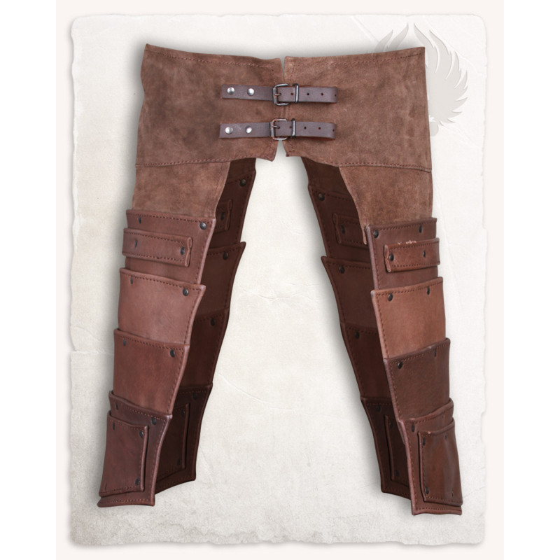 Taszki "Albrecht" doskonale komponują się z pancerzem na tors. Są zapinane na szeroki, wygodny pas ze zamszu, który mocuje się dwoma klamrami wokół bioder. Z tyłu można je indywidualnie dopasować za pomocą skórzanych pasków, co pozwala na wygodne noszenie ich przez niemal każdego użytkownika.