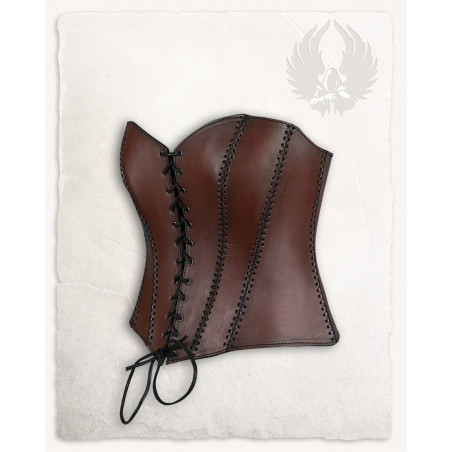 SKÓRZANY ANTYCZNY GORSET TAMARA - BRĄZOWY S LARP