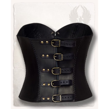 SKÓRZANY ANTYCZNY GORSET TAMARA - CZARNY M LARP
