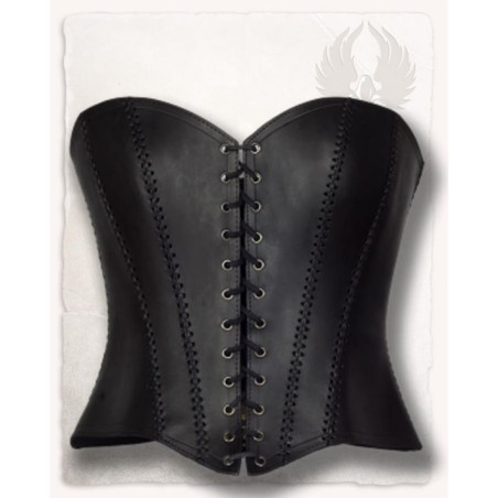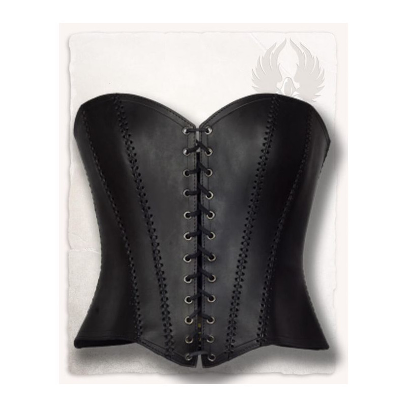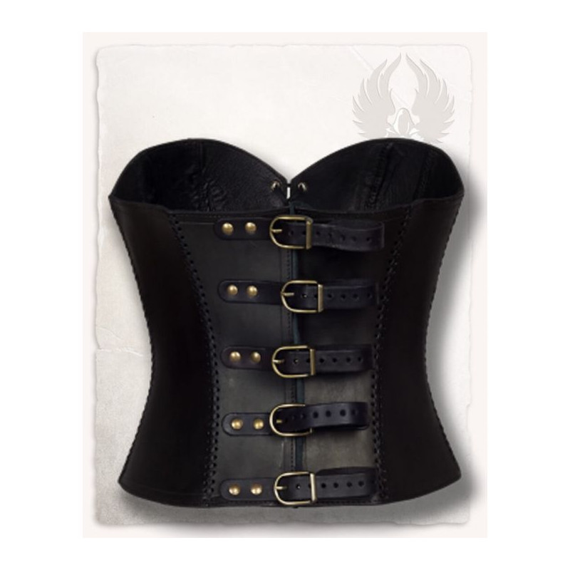 SKÓRZANY ANTYCZNY GORSET TAMARA - CZARNY XXL LARP