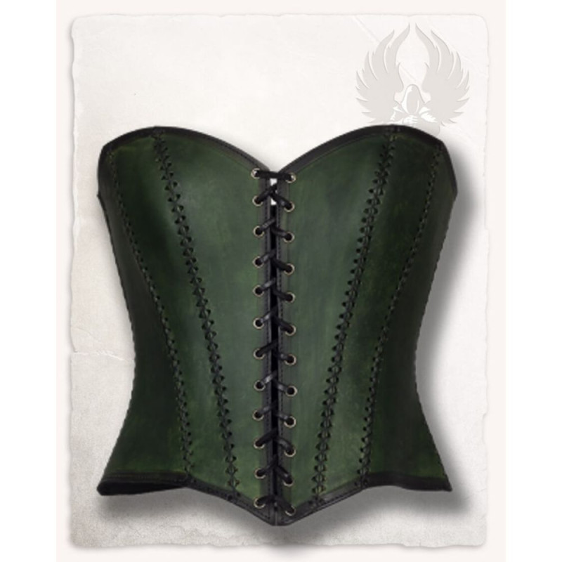 SKÓRZANY ANTYCZNY GORSET TAMARA - ZIELONY M LARP