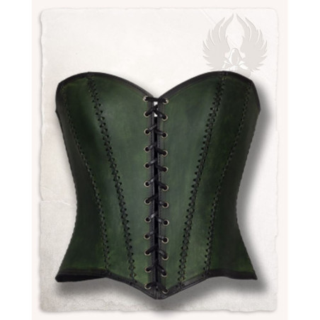 SKÓRZANY ANTYCZNY GORSET TAMARA - ZIELONY S LARP