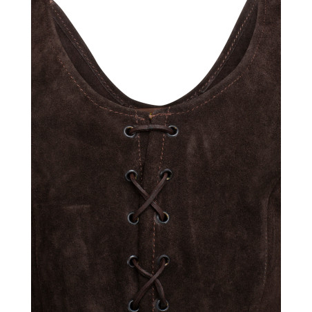 Gorset skórzany Caty – ten ładny gorset z zamszu można wiązać z przodu oraz po bokach.
