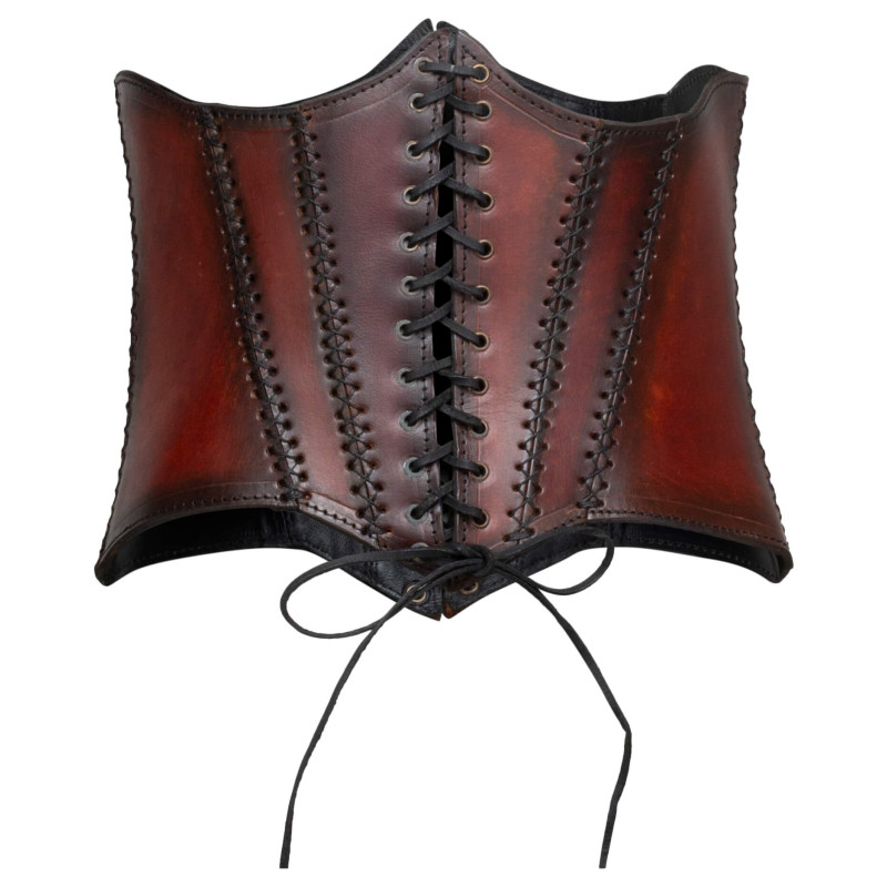 SKÓRZANY GORSET POD BIUST DUNJA - BRĄZOWY M LARP