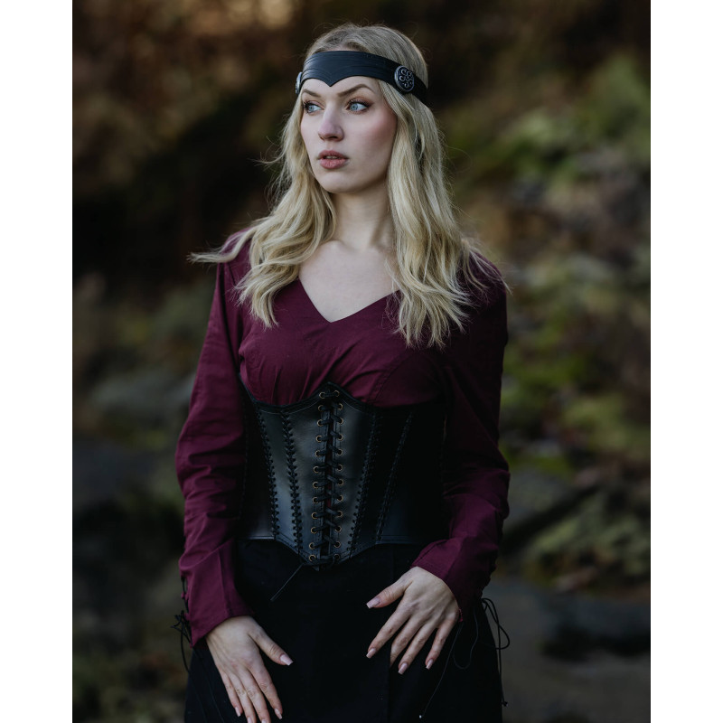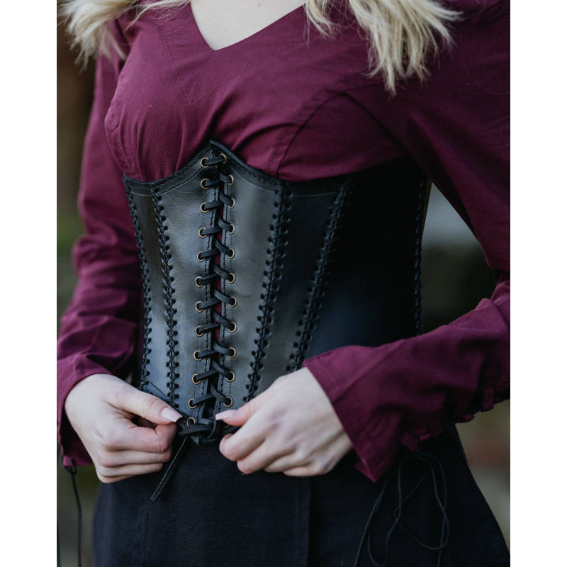 SKÓRZANY GORSET POD BIUST DUNJA - CZARNY XL LARP