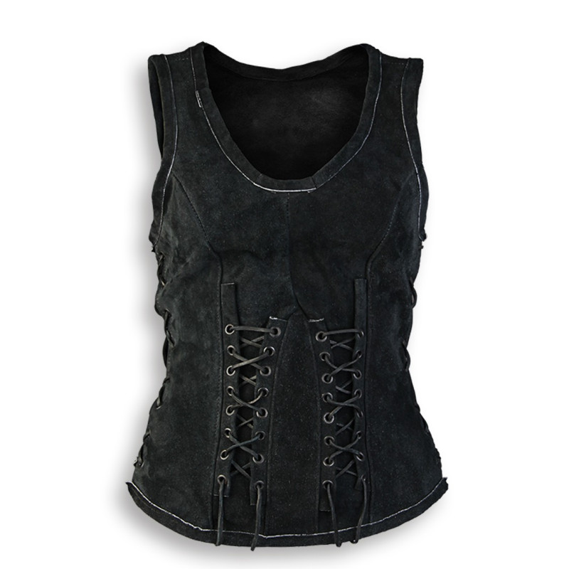 SKÓRZANY GORSET SARINA - CZARNY L LARP