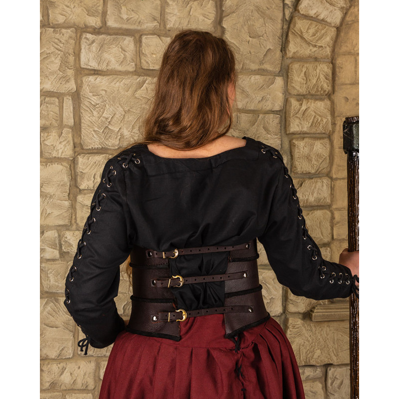 Gorset można łączyć z serią zbroi „Albrecht” lub „Geralt”, ale równie dobrze sprawdzi się noszony samodzielnie z sukniami i spódnicami.