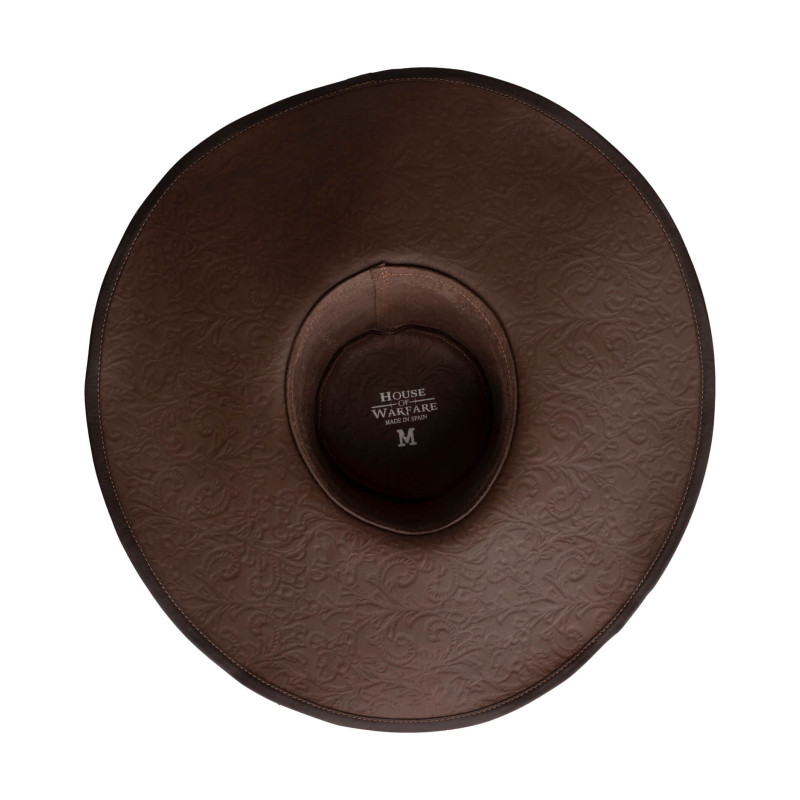 SKÓRZANY KAPELUSZ ALATRISTE - TŁOCZONY BRĄZOWY L LARP