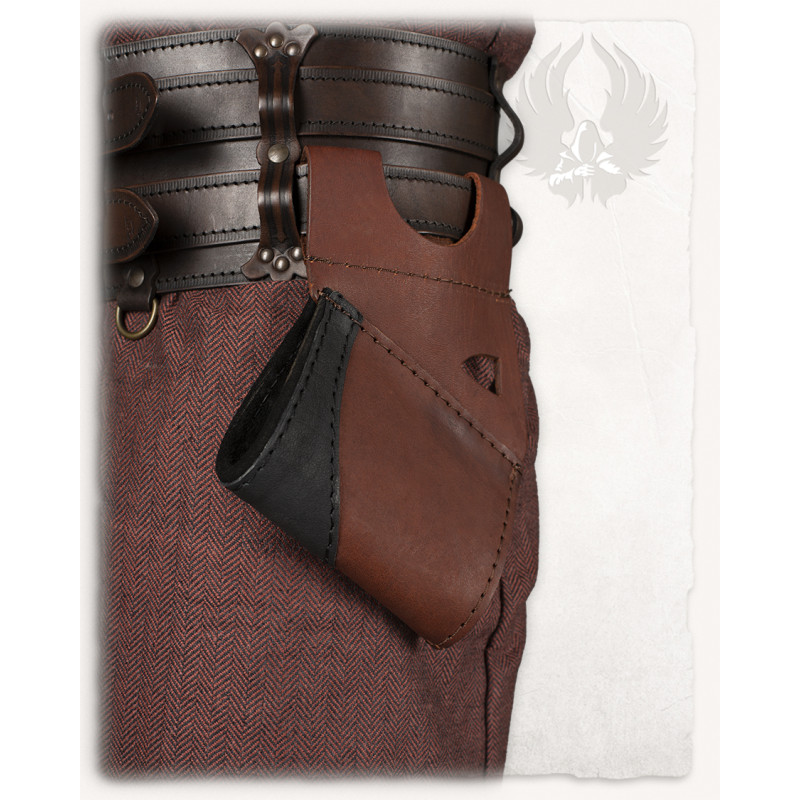SKÓRZANY LEWY UCHWYT NA MIECZ MORRIS - BRĄZOWY LARP