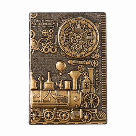 Oto powiastka, jakich wiele w naszych stronach. Na obrzeżach parowego miasta mieszkał genialny wynalazca, Arthus Gearsmith. Zbudował był ongiś maszynę, która miała zrewolucjonizować transport – pociąg, który napędzany był nie węglem, lecz alchemiczną mieszanką. Choć jego wynalazek przyciągał uwagę, Arthus wpadł w sidła chciwych kapitalistów, Baronów Zębatki. Ech, to zawsze muszą być oni. Chciwe łajzy! Zmuszono go do oddania projektu i patentu za bezcen, a jego laboratorium doszczętnie zniszczono. Gearsmith uciekł na obrzeża miasta (ponoć chował się w kanałach), gdzie obserwował jak jego wynalazek rewolucjonizuje transport pod rządami korporacji i spisywał swoje pomysły w notatniku z wizerunkiem parowego pociągu. Każda ze 100 stron stała się testamentem geniuszu i ostrzeżeniem przed tym, jak innowacja może zostać zmiażdżona przez żądzę zysku. Notatnik przetrwał, przekazując ducha wynalazcy kolejnym pokoleniom. Możesz stać się jego właścicielem i kontynuować dziedzictwo bystrego umysłu i nonkonformizmu. Uważaj tylko na smutnych panów w garniturach i z melonikami.