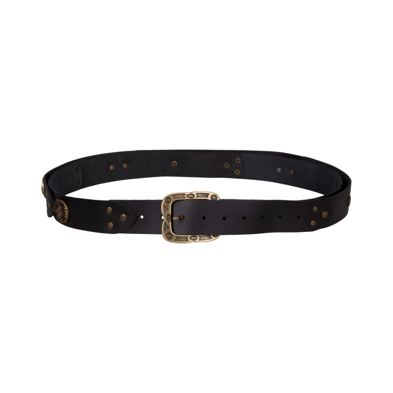 Ten solidny, skórzany pas jest ręcznie wykonany w Hiszpanii i posiada misternie zdobioną klamrę.