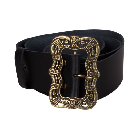 Ten solidny pas skórzany jest ręcznie wykonywany w Hiszpanii i wyróżnia się misternie zdobioną klamrą.
