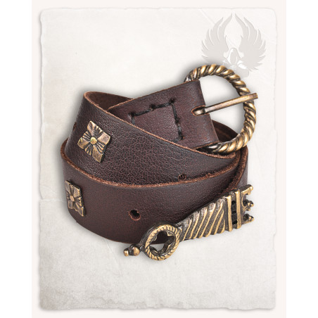 SKÓRZANY PAS MATTIS - BRĄZOWY LARP