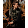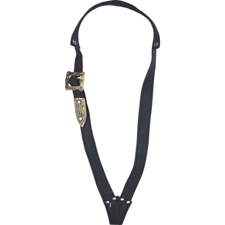 Ten pas naramienny wykonany jest z naturalnej skóry licowej i wyposażony w szczegółowo rzeźbioną mosiężną klamrę.