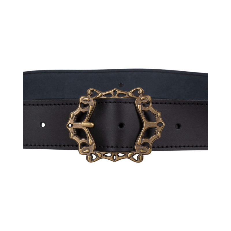 Pas Olegario – solidny, ręcznie wykonany pas skórzany z Hiszpanii, wyposażony w misternie zdobioną klamrę.