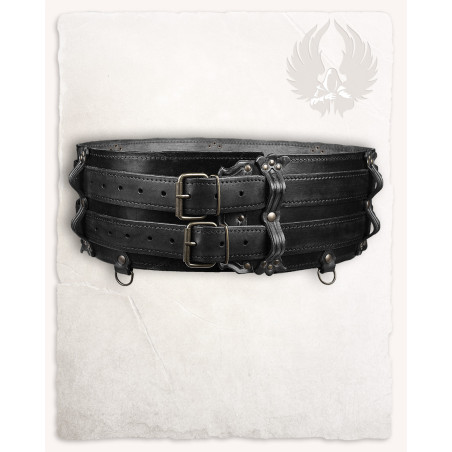 SKÓRZANY PODWÓJNY PAS LUTHOR - CZARNY L-XL LARP