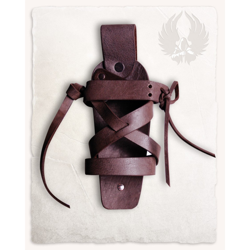 SKÓRZANY PROSTY UCHWYT NA POCHWĘ MIECZA LEON - BRĄZOWY LARP
