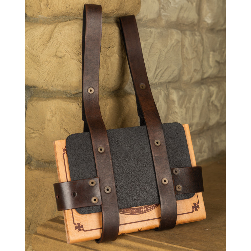 SKÓRZANY UCHWYT NA KSIĘGĘ TIBERIUS - BRĄZOWY LARP