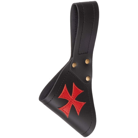 Uchwyt na miecz Cruzado wykonany z wytrzymałej skóry z naszytym krzyżem templariuszy to idealny dodatek do strojów inspirowanych krucjatami.