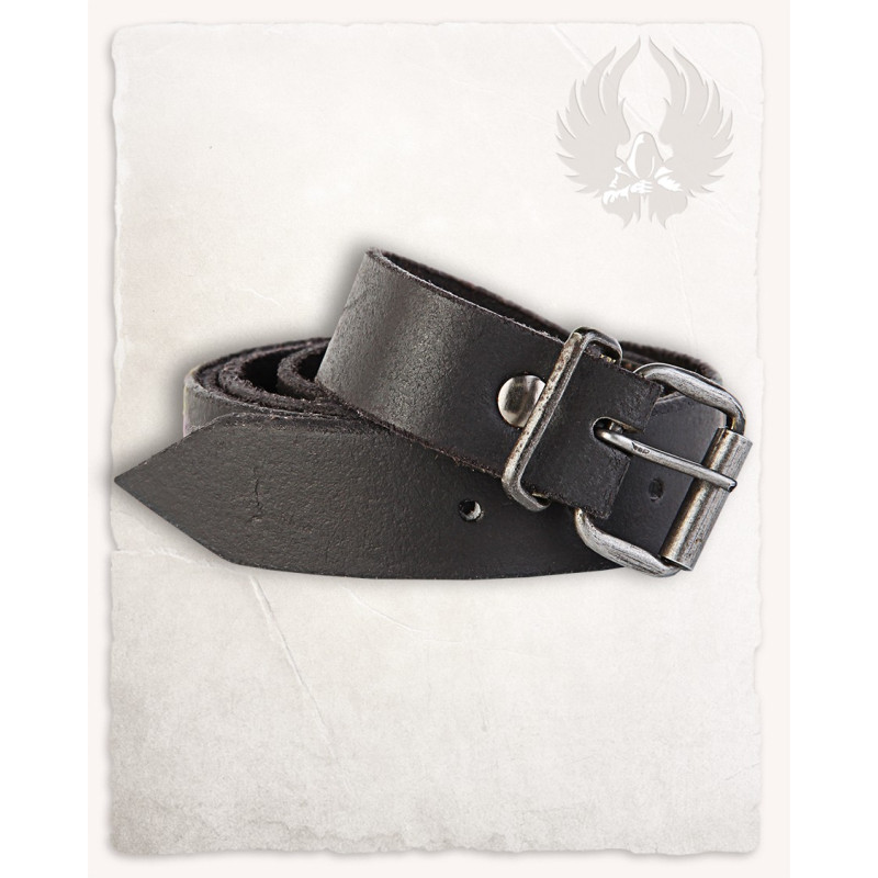 SKÓRZANY WĄSKI PAS DORAN - CZARNY LARP