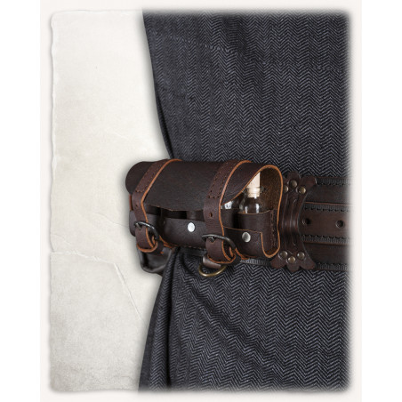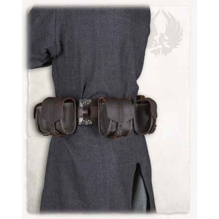 SKÓRZANY ZESTAW CZTERECH TOREB NA PAS BELWAR - BRĄZOWE LARP