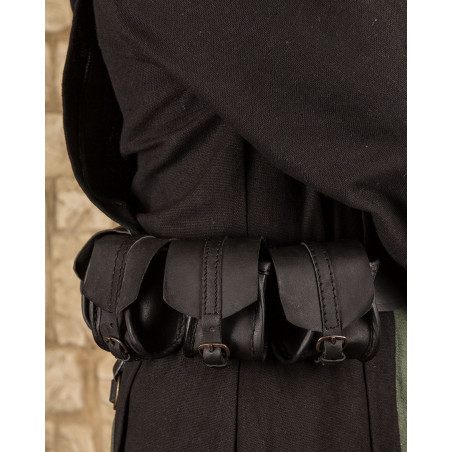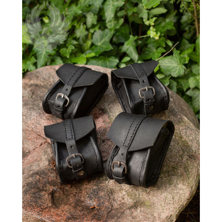 SKÓRZANY ZESTAW CZTERECH TOREB NA PAS BELWAR - CZARNE LARP