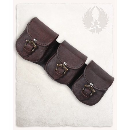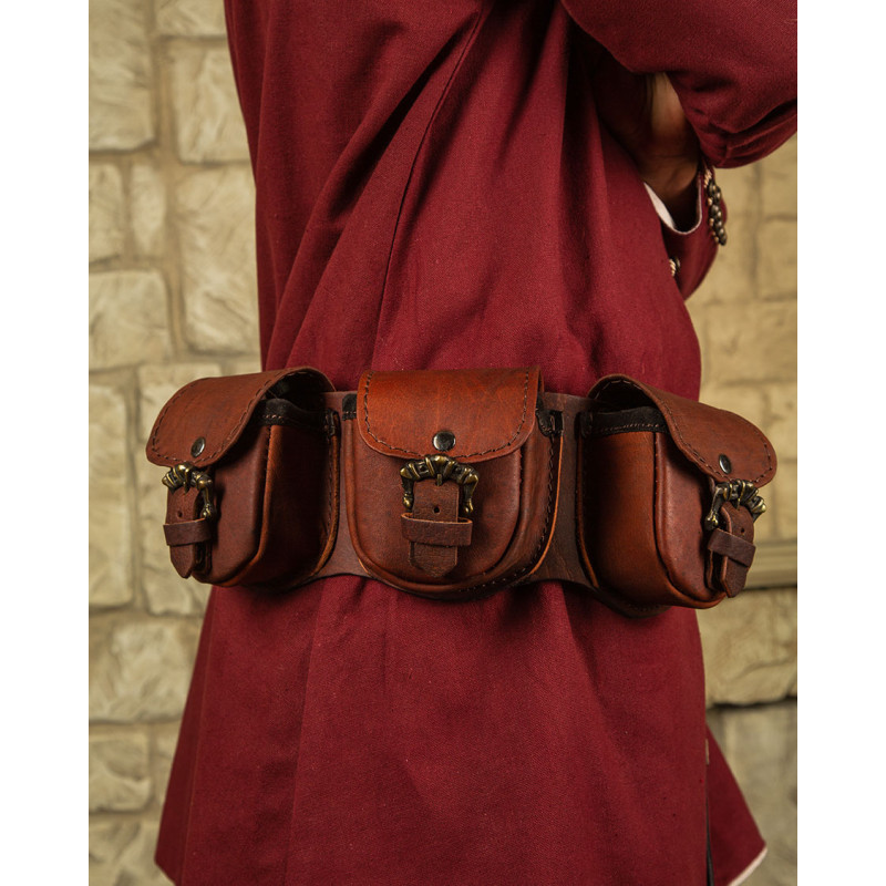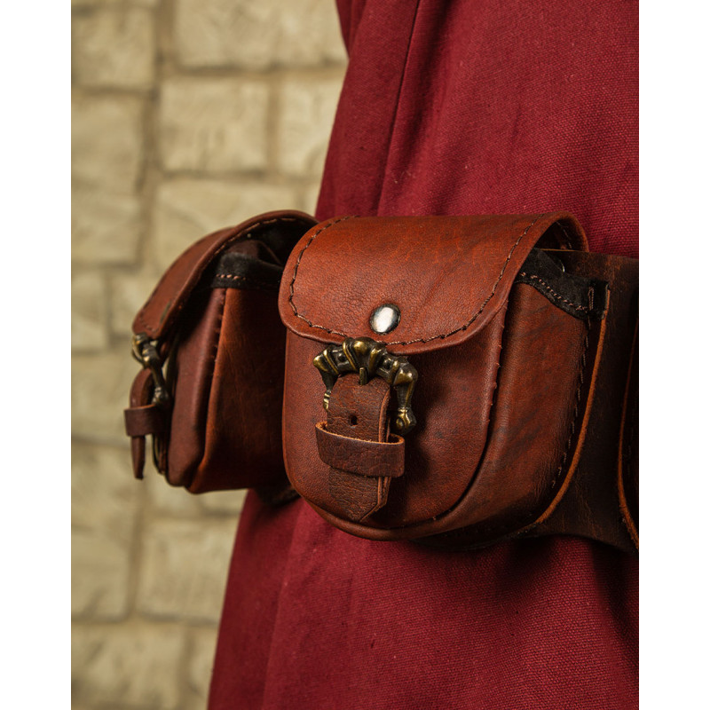 SKÓRZANY ZESTAW TOREB NA PAS LEON - BRĄZOWY LARP