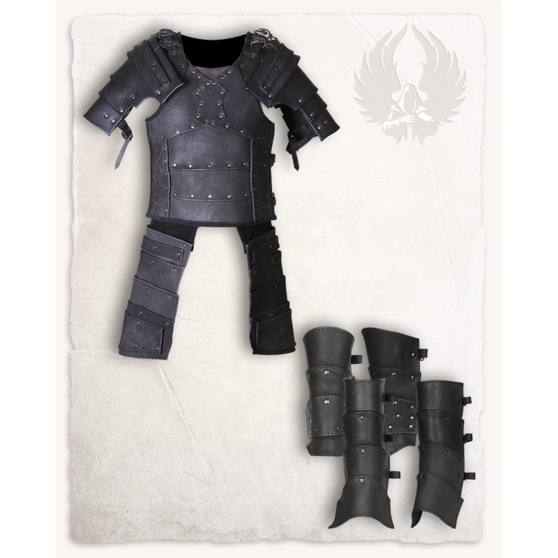 SKÓRZANY ZESTAW ZBROI ALBRECHT - CZARNY LARP